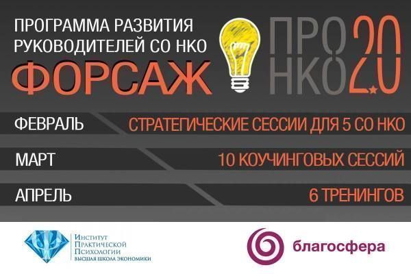 Что: Команда проекта развития лидеров СО НКО «ПРОНКО_2.0» открыла приём заявок на участие во втором модуле программы «Форсаж», которую запустила совместно с Институтом практической психологии Высшей школы экономики.
