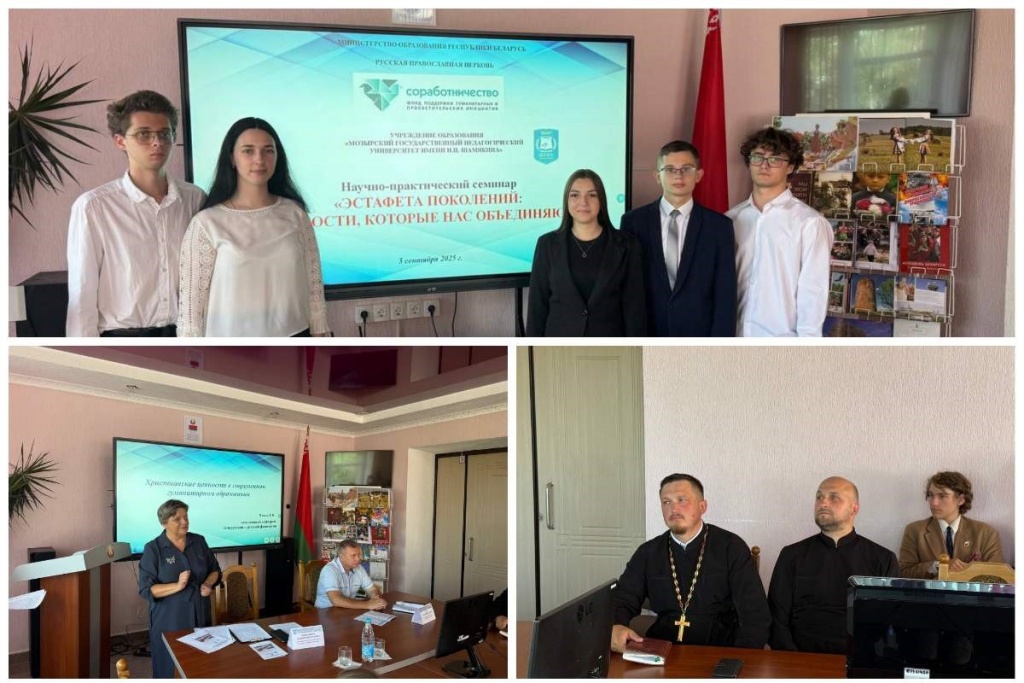 Научно-практический семинар «Эстафета поколений: ценности, которые нас объединяют» состоялся 5 сентября 2025 года в Мозырском педагогическом университете им. И.П. Шамякина (Гомельская область Белоруссии) в рамках молодежного проекта «Мы этой памяти верны!», посвященного 80-летию Победы в Великой Отечественной войне. Он реализуется при грантовой поддержке программы «Православная инициатива».