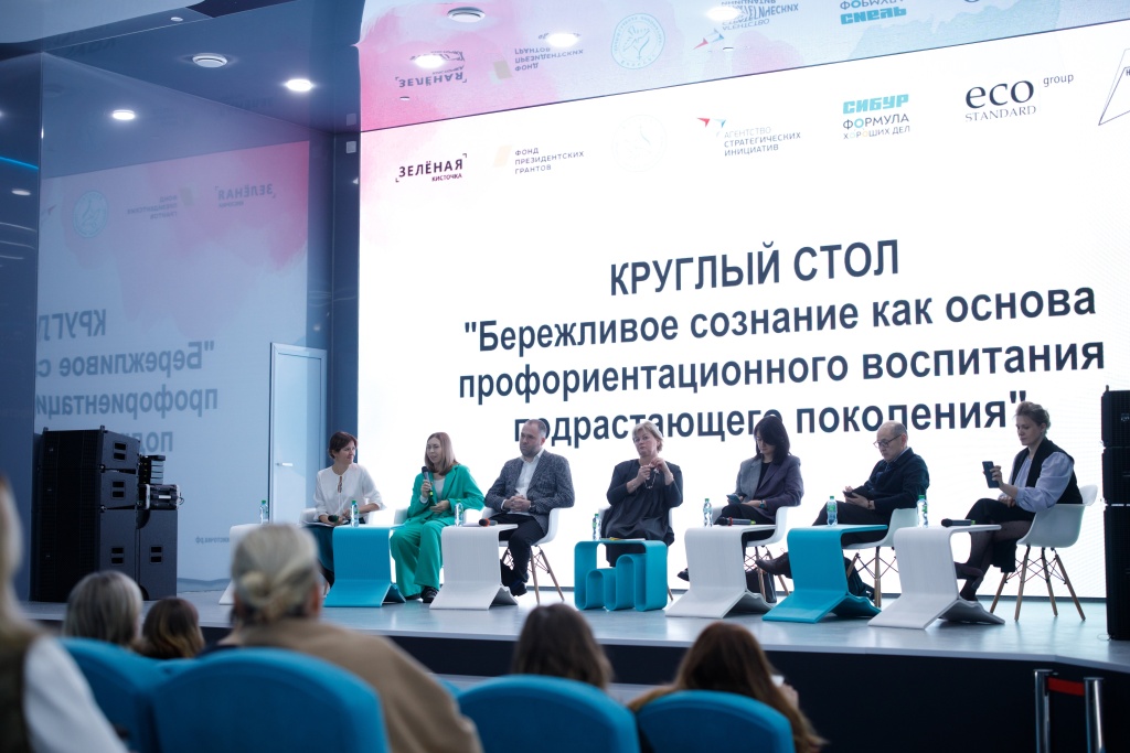 Церемонию награждения предварила дискуссия на тему «Бережливое сознание как основа профориентационного воспитания подрастающего поколения». Среди участников круглого стола были: Вера Кузубов, управляющий партнер по управлению персоналом и КСО компании EcoStandard group, президент фондов «Зелёная кисточка» и «Зеленый свет»; Николай Кривозерцев, генеральный директор компании EcoStandard group, руководитель Экспертного центра по ESG-трансформации, член Генерального совета «Деловой России»; Ариадна Черкасова, директор образовательного направления фонда «Зеленая кисточка»; Зоя Федотова, руководитель программы «Экологическая культура» АНО «Агентство стратегических инициатив»; Елена Тарасова, главный эксперт функции устойчивое развитие компании «СИБУР»; Алла Ларина, исполнительный директор Фонда поддержки гуманитарных и просветительских инициатив «Соработничество»; Тумун Цыдыбов, первый заместитель генерального директора «Байкал.Центра».