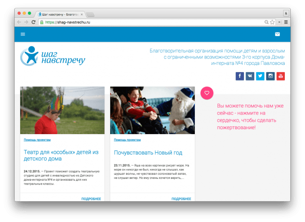 Сайт благотворительной организации «Шаг навстречу» работает на «Гигере».