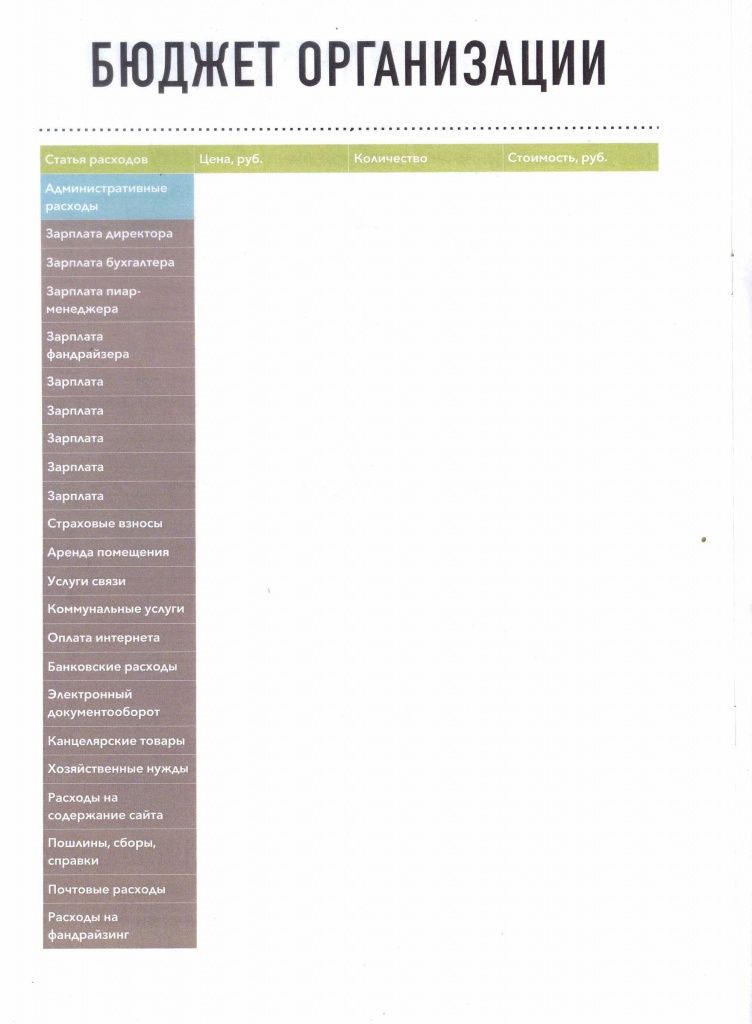 Также бюджет нужно детализировать по направлениям. Что такое направления? Это, как сказала одна наша сотрудница, «старые проекты, новые проекты, разные проекты»: на лагерь нужно вот столько-то, на школу — столько-то, на выставку — столько-то.