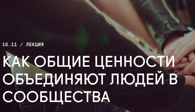 Проекты сильны своими сообществами. Если вам удалось создать устойчивое, активное сообщество единомышленников, то вы сможете реализовать на практике любую идею. Но для создания сообщества одной харизмы мало, нужны знания. Такие знания и знакомство с опытом профессионалов вы можете получить 16 ноября в Институте «Стрелка», по адресу Москва, Берсеневская набережная, 14, стр. 5а.