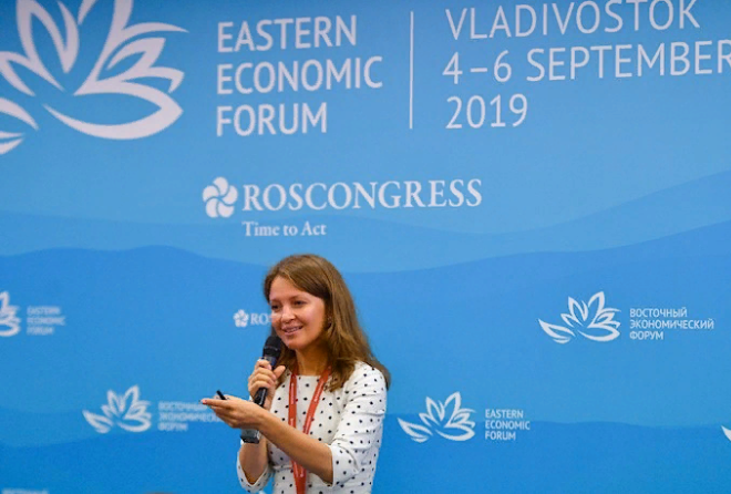 3 сентября в рамках Нулевого дня Восточного экономического форума Фонд президентских грантов провёл образовательный день для НКО. На обучающие мероприятия Фонд собрал около 80 представителей организаций-победителей Фонда президентских грантов из регионов Дальневосточного федерального округа. Одним из образовательных блоков Нулевого дня стал мастер-класс «Работа над публичными выступлениями». В числе участников была и представительница Арсеньевской епархии, выигравшей в прошлом году президентский грант на реализацию проекта «Дальневосточная ярмарка русской культуры «ЗА ВЕРУ И ОТЕЧЕСТВО»», Екатерина Придворова. Она поделилась, что удалось узнать во время этого мастер-класса от Светланы Винокуровой, возглавляющей Школу ораторского мастерства «Человек слова».
