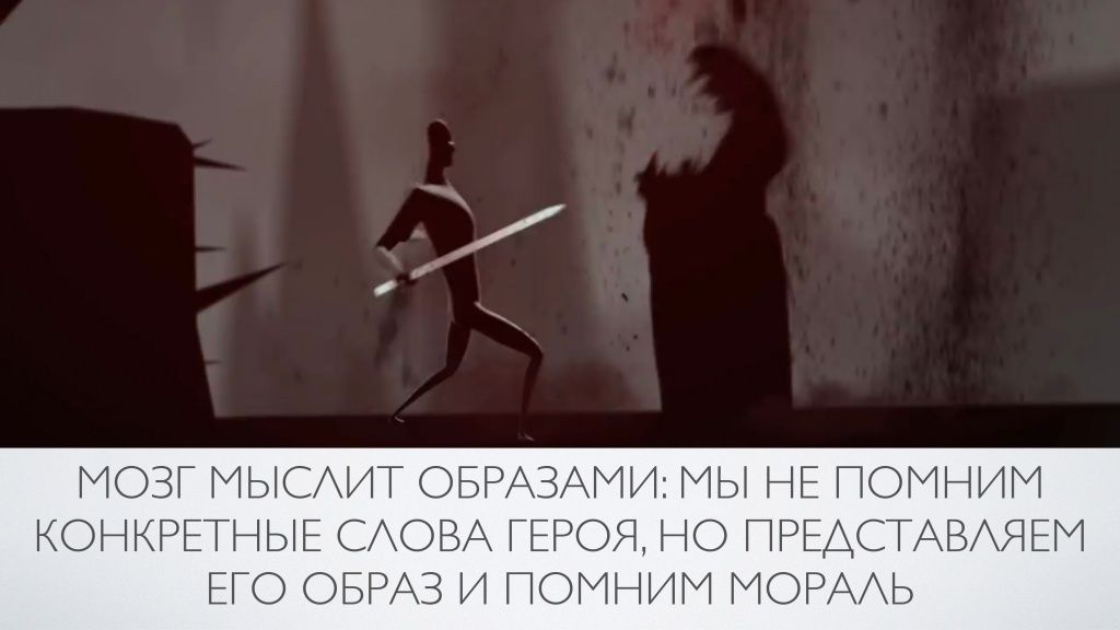 Почему так происходит? Наш мозг обладает уникальным свойством – он всё вокруг превращает в нарратив (т.е. в повествование). Даже когда мы спим, наши сны – это работа подсознания, которое обрабатывает всё, что мы пережили за день. Точно так же происходит и с литературными произведениями, и с фильмами, и с видеоиграми, и с какими-то сильными журналистскими материалами. Мы мыслим образами – возможно, не помним конкретные слова героя из фильма, но представляем его образ и вспоминаем мораль, которую хотел заложить автор в свое произведение.