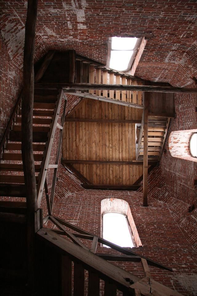 В 2017 году нам необходимо доделать полноценную лестницу на колокольню, т.к. консервационные работы по храму, включают и подъем на колокольню. А деревянный настил, которым мы хотим закрыть свод, защитит свод от повреждений, при возможном падении кирпича сверху, а также защитит свод от людских повреждений, т.к. на колокольню поднимаются немногочисленные туристы и активисты восстановления. Также будет заменена дверь на колокольню и врезан замок, чтобы случайные люди (особенно дети) не смогли подняться на лестницу колокольни без сопровождения активистов храма.