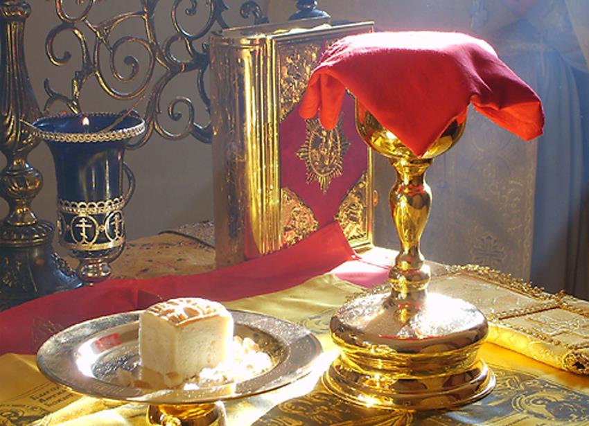 Потир — сосуд, предназначенный для воды с вином (символизируют Кровь Христову).