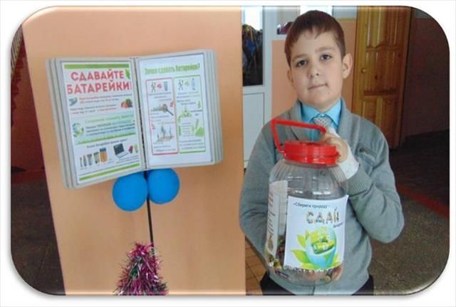 В связи с этим Данил поставил в школе самодельный контейнер для сбора использованных батареек и зарегистрировал его на сайте Сдай батарейку.РФ, а чтобы ребята активно сдавали батарейки, сынок провел школьную радиопередачу Вся правда о батарейках, написал статью в школьную газету Пришкольная весточка и вместе со своим другом раздал памятки Зачем сдавать батарейки?!.