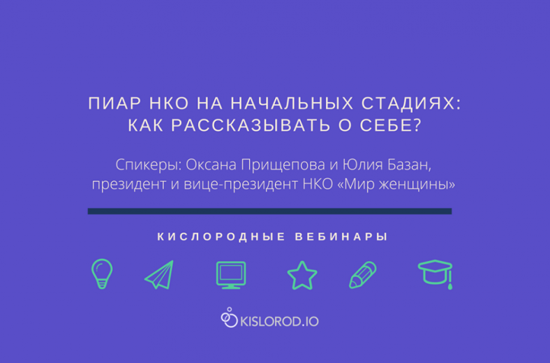 Анонс: вебинар «Пиар НКО на начальных стадиях: как рассказывать о себе?» Вторник, 17 января, 18:00 — 19:00 Онлайн. Образовательный веб-проект Kislorod.io представляет вебинар, на котором расскажут о том, как грамотно выстроить связи с общественностью. Встреча будет особенно полезна недавно созданным НКО и активистам, которые только собираются создать свою организацию. В рамках вебинара планируется рассмотреть следующие вопросы: • С чего начать, если есть огромное желание решить какую-то социальную проблему? Своим опытом поделятся эксперты — Оксана Прищепова и Юлия Базан, которые представляют калининградскую организацию «Мир женщины», недавно отметившую пятилетний юбилей. За время своего существования организации удалось наладить широкую сеть взаимодействия с разными структурами, реализовать большое количество социальных проектов, привлечь внимание общественности, а также получить премии и награды. Всем слушателям организатор — образовательный веб-проект Kislorod.io — вручит именные сертификаты. Вебинар бесплатный. Для участия необходимо зарегистрироваться. e-mail: info@kislorod.io (образовательный веб-проект Kislorod.io) Источник asi.org.ru