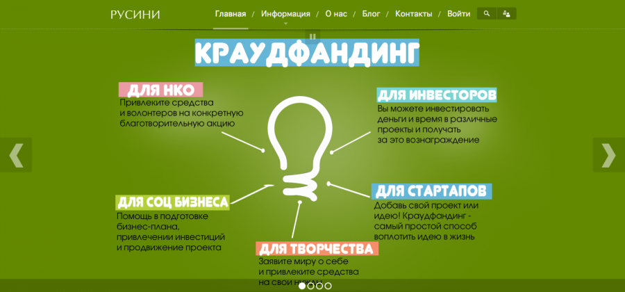 Первые российские сайты краудфандинга появились лишь в 2007 году. Изначально они охватывали узкоспециализированные направления по инвестированию в творческие проекты музыкантов, писателей, режиссеров