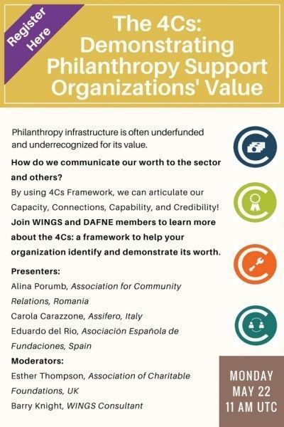 Вебинар об инфраструктурной благотворительности от экспертов WINGS The 4Cs: Demonstrating Philanthropy Support Organizations’ Value