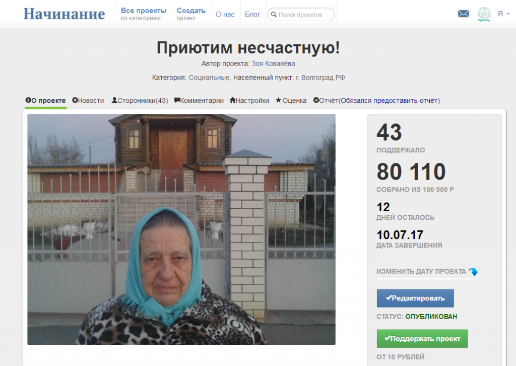 Поддержать проект помогающий доброй прихожаночке Анне Макаровне http://www.nachinanie.ru/Project/Index/74961