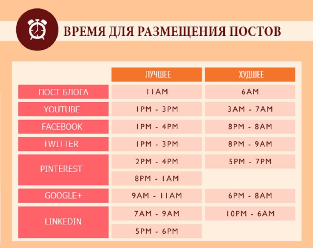 Размещать информацию лучше в одно и то же время, так как аудитория привыкает к определенному времени подачи информации. Важно учитывать и день размещения текста. Наблюдения показали, что лучшие дни для размещения информативных сообщений – среда и четверг, для развлекательного контента – понедельник, пятница.