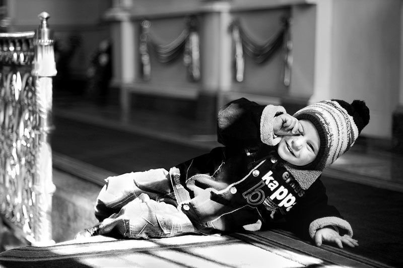 Мамы знают, как порой трудно удержать резвого малыш на одном месте и его естественное поведение порой мешает не только родителям, но другим прихожанам духовно сосредоточиться.
