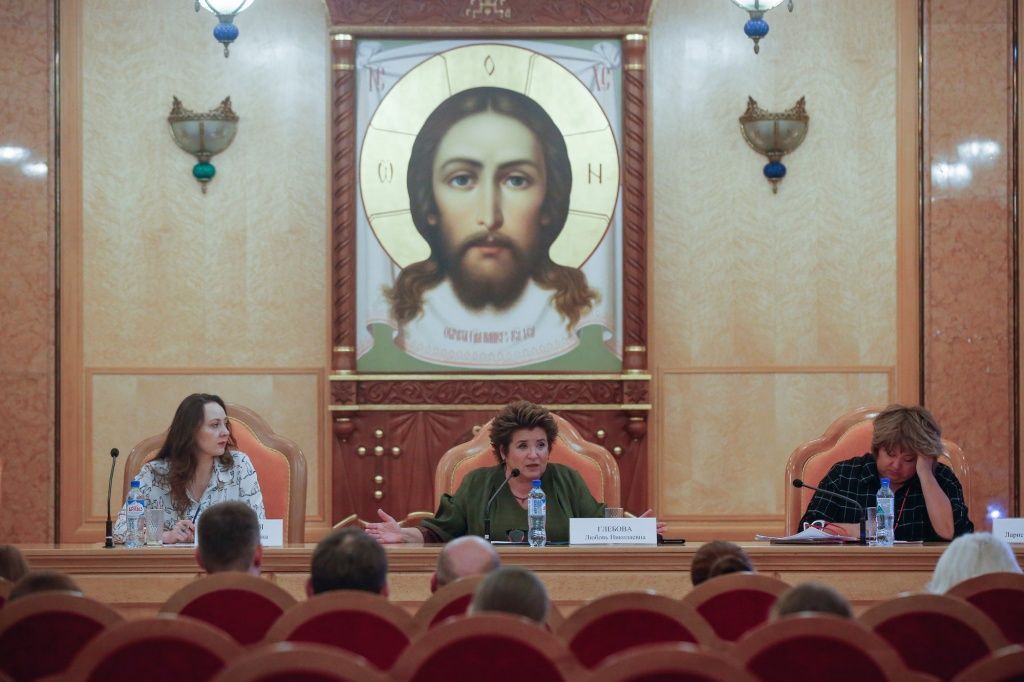 Круглый стол вела исполнительный директор Координационного комитета по поддержке социальных, образовательных, информационных, культурных и иных инициатив под эгидой Русской Православной Церкви, член Совета Федерации Л.Н. Глебова.