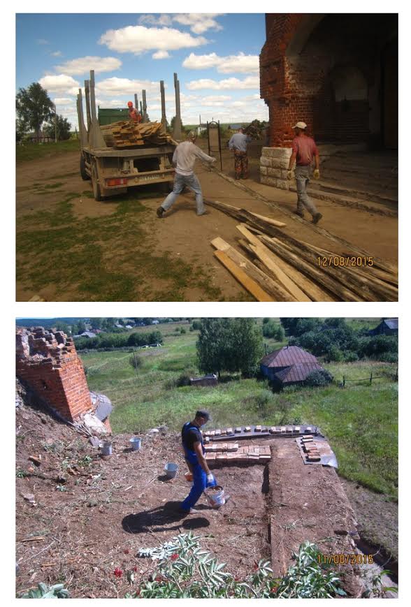 — в августе месяце добровольцы Добровольческого объединения молодёжи РеставросЪ при Патриаршем центре духовного развития детей и молодёжи Данилова ставропигиального мужского монастыря (г. Москва) аккуратно очистили всю крышу от буйной растительности, сделали лестницу на колокольню, продолжали расчистку подвалов восточной стороны. За что им огромное-огромное Спасибо!!!