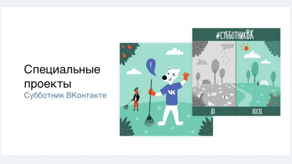 Этот специальный проект был направлен на возрождение старой традиции субботников современным способом. Всем желающим очистить свой двор и навести порядок в своей округе «ВКонтакте» предложил помощь. Люди заполняли специальные анкеты, а социальная сеть создавала специальное небольшое сообщество и запускала таргетированную рекламу именно на людей, которые живут в этом дворе. Таким образом, «ВКонтакте» собирал неравнодушных соседей: люди выходили на субботники и делали наш мир чище. Подобные субботники прошли более чем в ста различных городах.