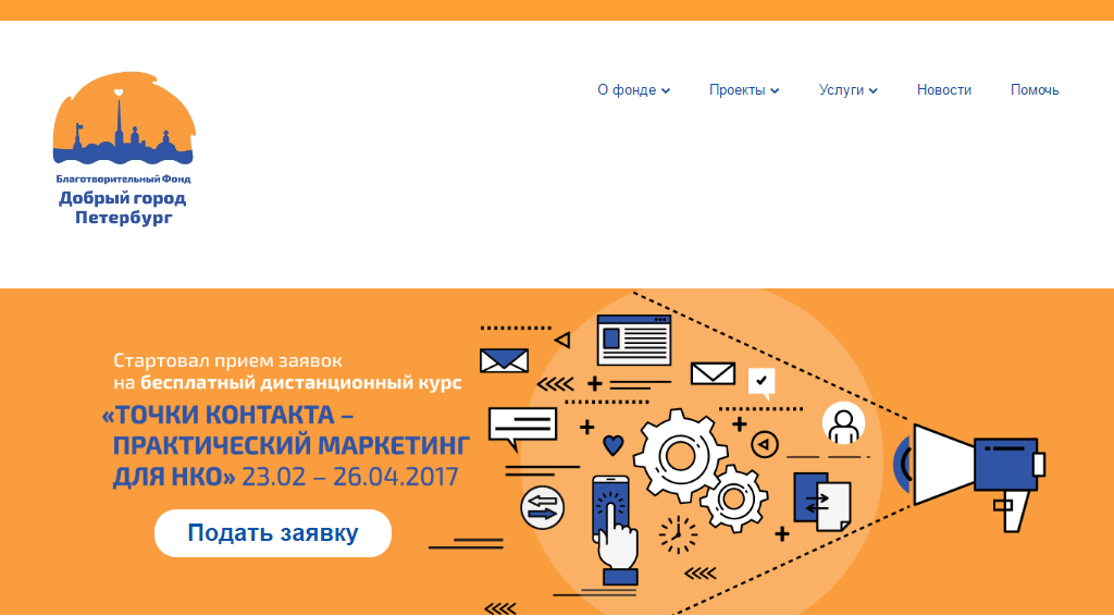 Дистанционный курс организует благотворительный фонд «Добрый город Петербург». Подать заявку на курс могут как опытные, так и начинающие общественные организации. Курс будет состоять из мини-лекций, разбора кейсов, практических заданий и тестов, тематических дискуссий и консультаций с преподавателями.