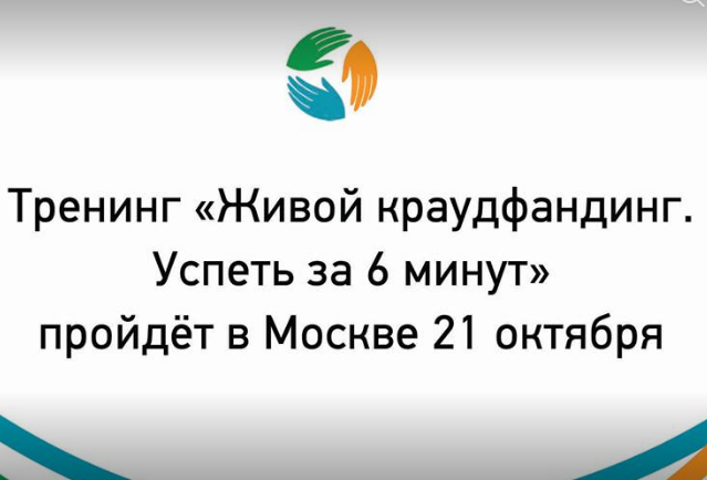 21 октября состоится тренинг на котором будет представлена новая фандрайзинговая модель. Эксперты расскажут об инструменте поиска денег за 6 минут. Тренинг пройдёт в центре «Благосфера» в рамках Ежегодной конференции Форума Доноров