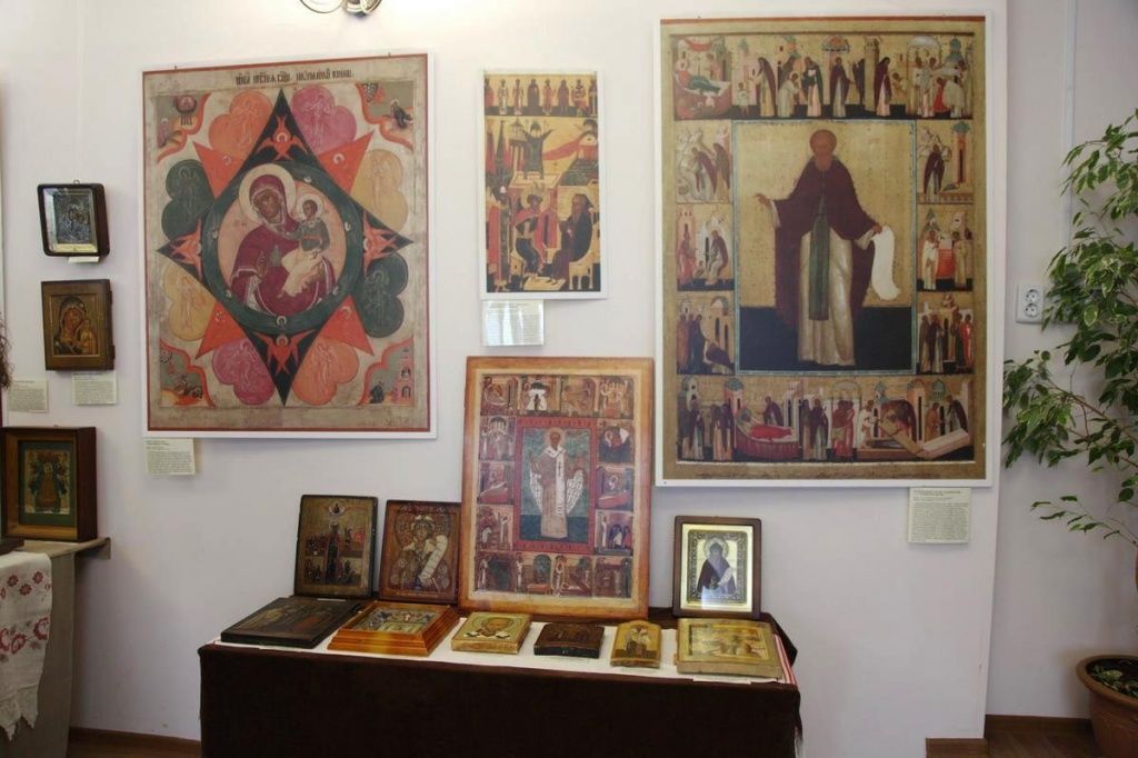 На выставке представлены также церковная утварь, кресты, медальоны, складни и древние книги из собрания нашей епархии. Все это органично сочетается друг с другом, охватывая разные периоды истории, давая возможность рядом с копиями увидеть подлинные творения православных живописцев и мастеров.